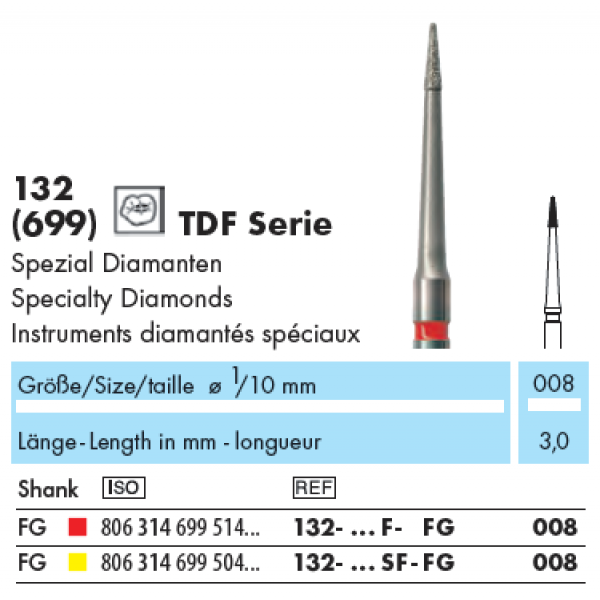 132-008F-FG Freza diamantata TDF finisat compozit