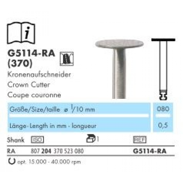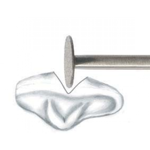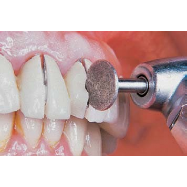Discul este realizat prin sinterizarea diamantului in liant metalic . Se utlizeaza cu piesa contraunghi . Este esential sa se realizeze o taietura larga in forma de V in coroana, pentru a evita blocarea discului . Se poate utliza pe orice material : ceramica , zirconiu , metale etc . Folositi racire cu apa la utilizare .