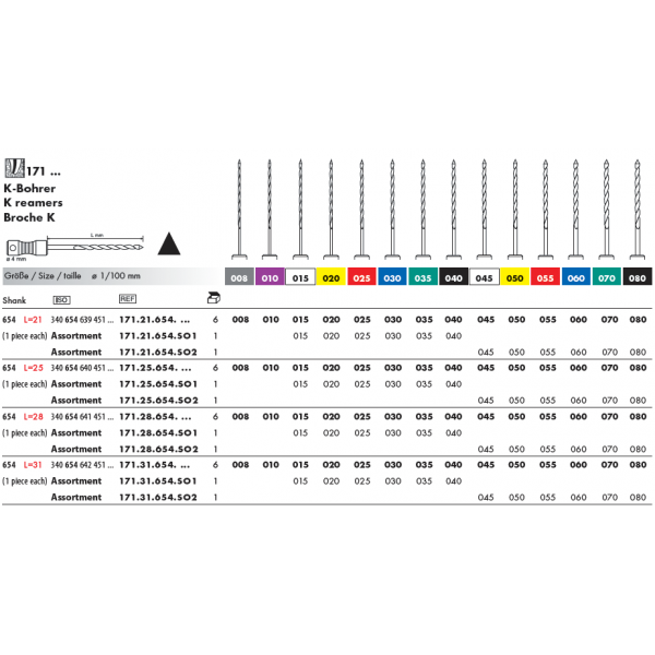 171.21.654.SO1 Reamers lungime 21 asortat mic